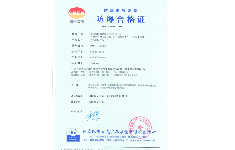 音叉限位開關(guān)防爆合格證
