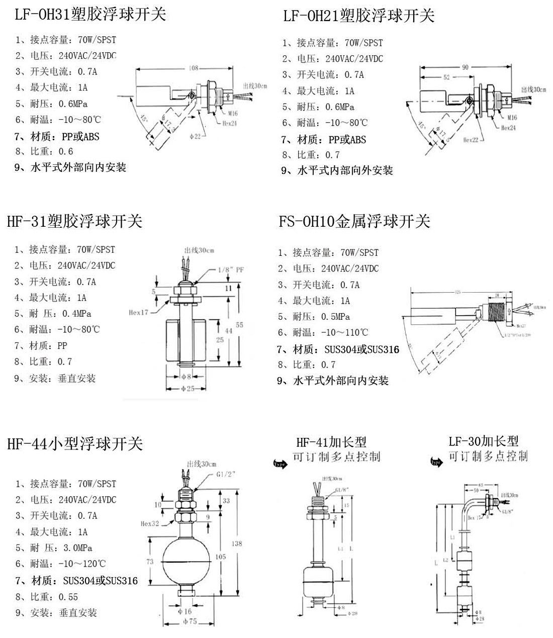 6、HF-41加長型 浮球開關(guān)